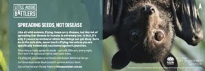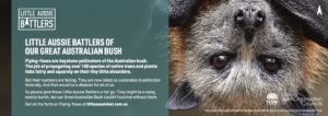 Flying-foxes are keystone pollinators and seed dispersers of the Australian bush. The job of propagating over 100 species of native trees and plants falls fairly and squarely on their tiny shoulders. Without them, there would be no food and shelter for our koalas, no pristine habitat for our extraordinary array of native birds, and no magnificent forests for all of us to enjoy. But due to loss of habitat and climatic changes, their numbers are falling dramatically. The Grey-Headed Flying-fox is now listed as vulnerable to extinction. This loss of natural habitat and food availability has seen them increasingly set up camp near towns in search of food and shelter, affecting residents and communities. So I was thrilled to be invited by Rollingball to help develop the Creative Strategy and content for the Little Aussie Bat campaign for the Hunter Joint Organisation of Councils, to help dispel a few myths and spread the word about these amazing Little Aussie Battlers of the Great Australian Bush.